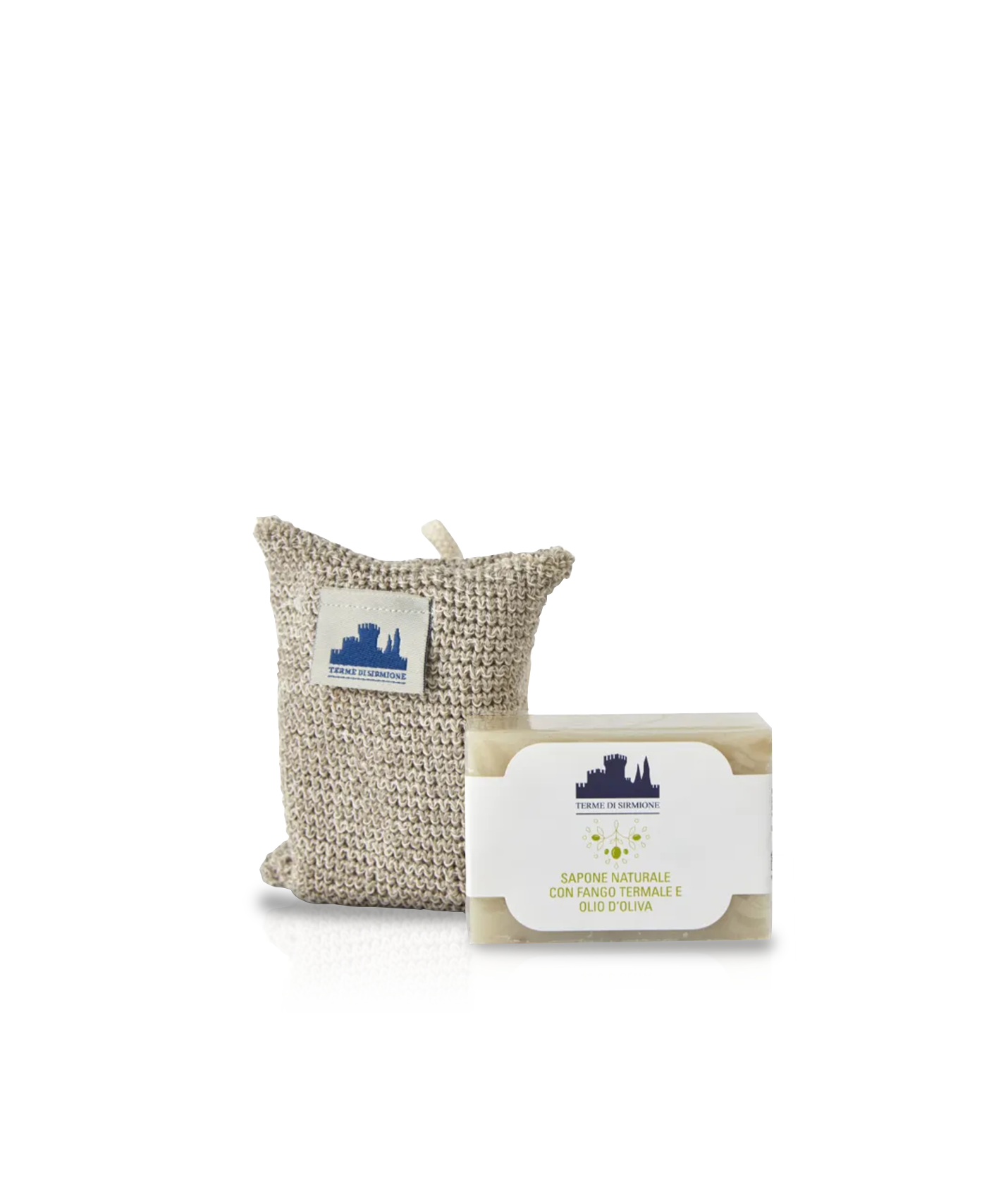 Sapone al Fango Termale e Olio d'Oliva all'interno di un sacchetto in fibra naturale