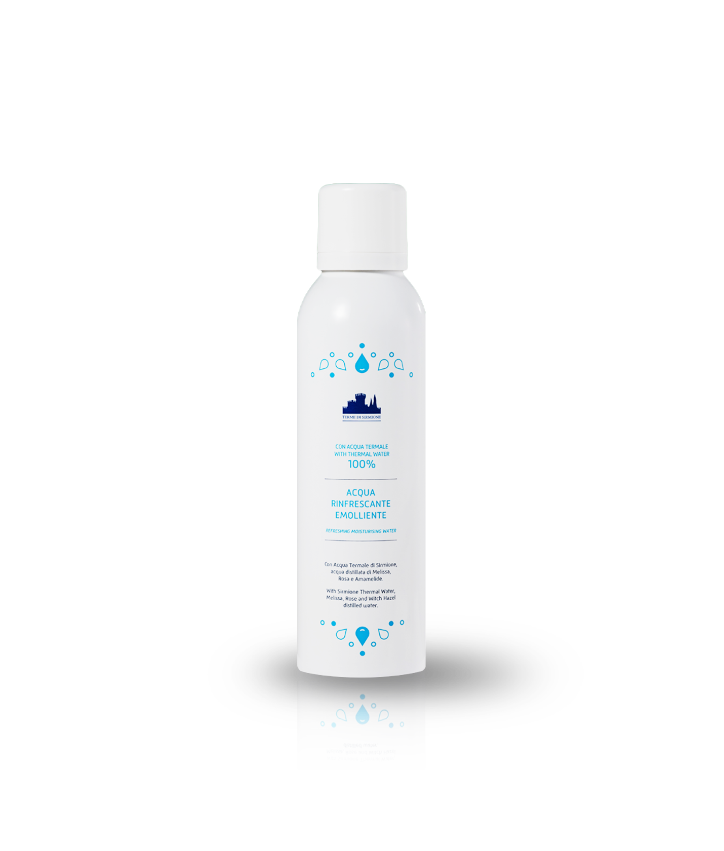 Pure Terme di Sirmione Thermal Water enriched with distilled water of Melissa, Rose and Witch Hazel with a refreshing and softening action, ideal for face and body. The ideal product to enjoy an immediate sense of increased tone and hydration throughout the day thanks to an instant feeling of freshness and vitality for dry and tired skin.