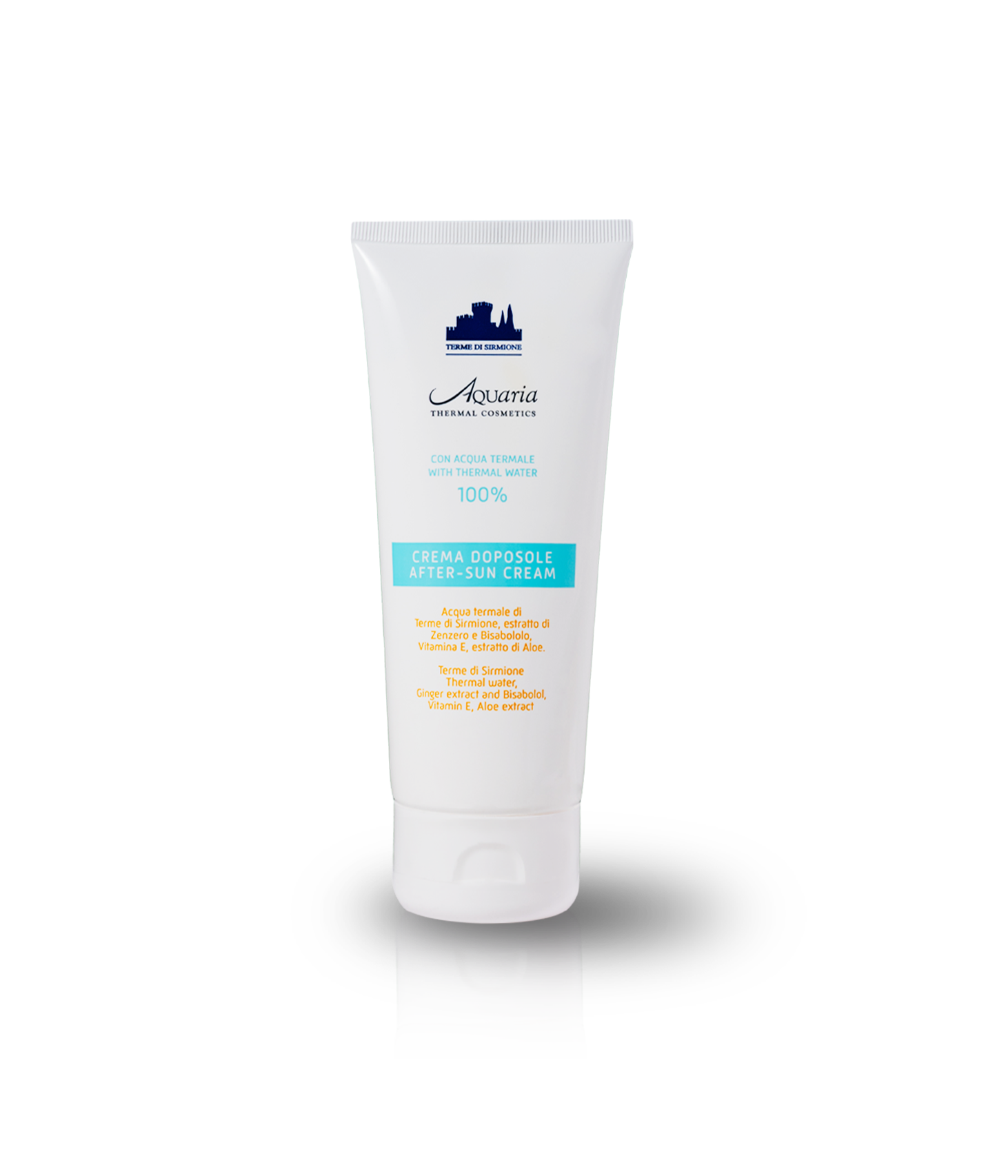 La crema doposole all’Acqua Termale di Terme di Sirmione contiene un blend sinergico di estratto di Zenzero e Bisabololo, dalle note proprietà lenitive e addolcenti. Contiene inoltre Vitamina E, importante antiossidante naturale, ed estratto di Aloe idratante. La presenza di Olio di Mandorle dolci e Burro di Karité contribuisce a mantenere la pelle morbida e vellutata, adatta per viso e corpo e per tutti i tipi di pelle. Ricca di efficaci componenti che permettono all’epidermide di ritrovare la sua naturale elasticità e di mantenere una buona idratazione dopo l’esposizione al sole.